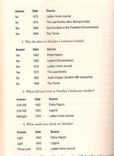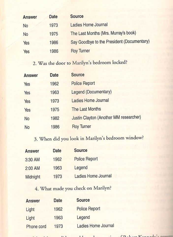 As you can see, Eunice’s story DID change over the years. A lot of it was in the 1980’s when Summers and Slatzer were headlining for “finding the truth”. When you watch interviews of Eunice her story tends to change with what theory is popular at the time. It doesn’t mean it’s done maliciously or that she was trying to cover up anything. Most Marilyn experts agree that Eunice had a loyalty to both Marilyn and Greenson and did not want to risk being liable while Marilyn was in her care. With her muddling of the waters, Murray is simply an unreliable witness.