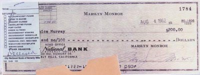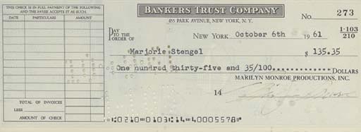 All are confirmed to have worked with Marilyn and all have proof either through photos, checks, or a combination of the two. Lena of course has an excuse, all of her stuff was destroyed. The issue with this is that checks used to be sent back to the person who made them out. With how organized Marilyn’s “people” (May Reis, Marjorie Stengel) were with her documents, it’s highly unbelievable that they would lose every single check that someone that supposedly worked for Marilyn for 5 years received.