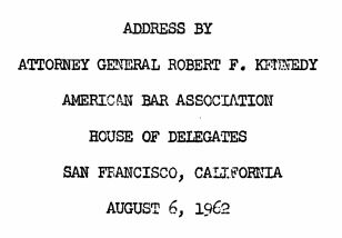 Bobby was there to give an address on August 6, 1962 to the American Bar Association. You can find the speech by clicking on the photo below: