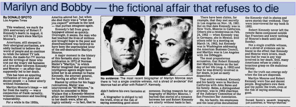 Spoto could not word it better in this article from 1992. History does not support these asinine claims that originated with Dorothy Kilgallen on August 3, 1962. They went on to be drawn out into a slanderous pamphlet by Frank Capell that was released in 1964, 1967, and 1968. You can read more about Kilgallen and Capell in the archives. So what does history confirm for us?