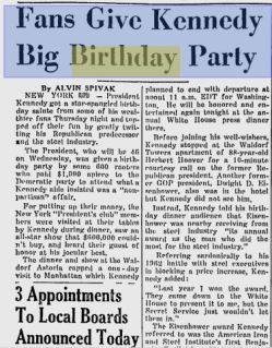 December 5, 1961, JFK was in New York to make a speech at the National Football Banquet and Hall of Fame held at the Waldorf-Astoria in New York. Marilyn arrived two hours late being her hair had been styled by Kenneth Battelle.