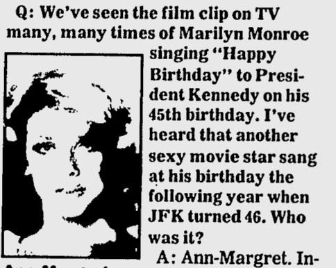Ann-Margret ALSO sang for JFK’s 46th birthday.