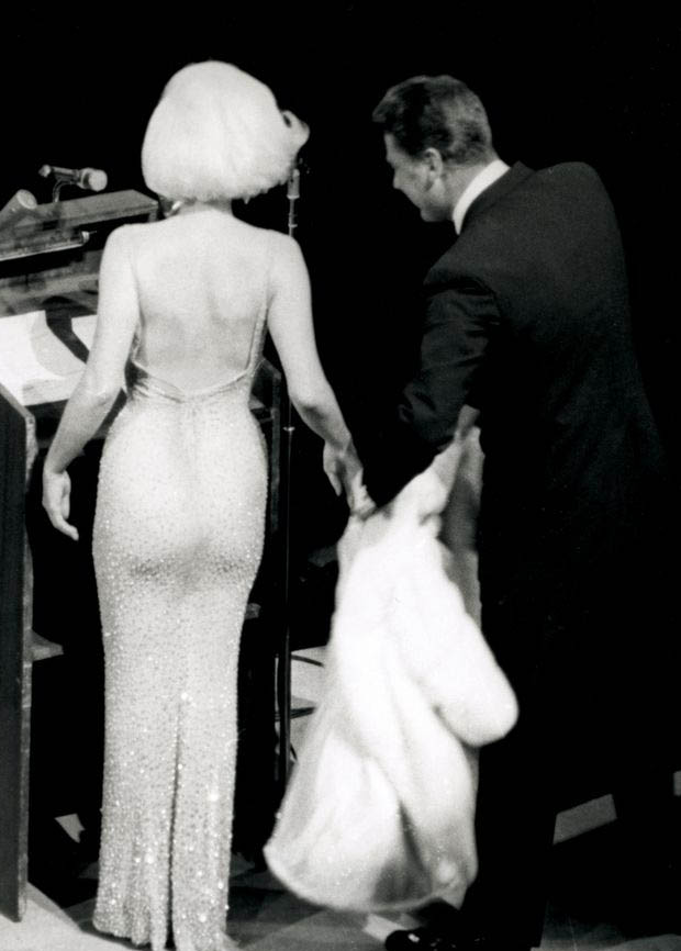 December 5, 1961, JFK was in New York to make a speech at the National Football Banquet and Hall of Fame held at the Waldorf-Astoria in New York. Marilyn arrived two hours late being her hair had been styled by Kenneth Battelle.