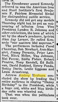 A lot of people also don’t realize that Audrey Hepburn sang for the President the following year.