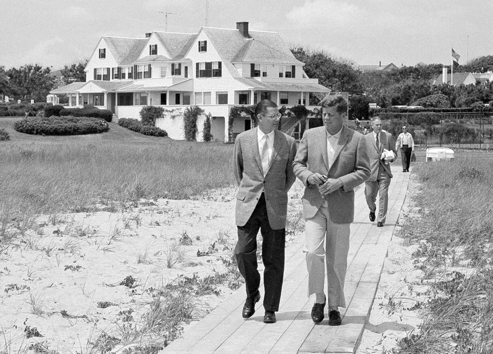 Keith Badman has Marilyn and Kennedy first meeting at Joe Kennedy’s home at Hyannis Port, Mass. This was on September 23rd and 24th of 1961. Jaqueline Kennedy was in attendance and so was Pat Newcomb. The Gazette-Mail states that an unidentified guest attended which may have been Marilyn but that cannot be confirmed. I personally also a bit unlikely being Marilyn arrived in New York to see Joe DiMaggio on the 22nd. She wouldn’t have had enough of a relationship with them to be flown in on a private plane and she most likely would have been spotted at the airport to fly to Massachusetts.
