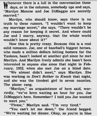 A Select Timeline of Marilyn and Joe in the Press