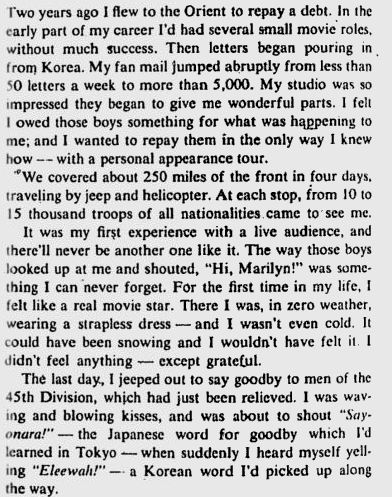 Marilyn on Korea in 1956