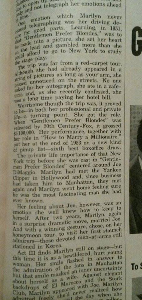 Here, on the other hand, is the famous retelling we all know and love from Marilyn herself to Liza Wilson on December 6, 1953.