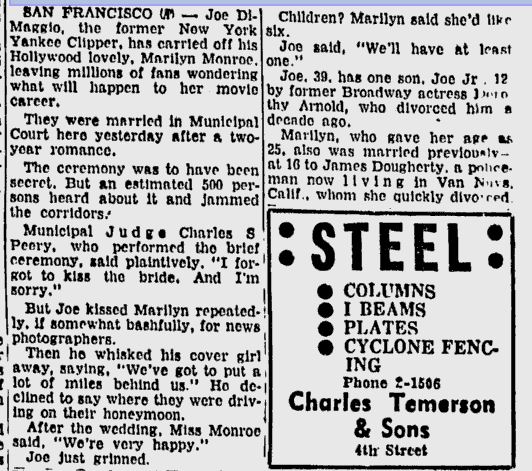 A Select Timeline of Marilyn and Joe in the Press