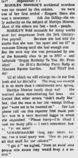 Dorothy Kilgallen alluded to Marilyn seeing many men over the years including Slatzer, Dan Daily, Norman Krasna, and even Pat de Cicco. Her repeated animosity towards Marilyn does not appear to have a valid reason on the outside. In fact they had a decent relationship until 1953, when Marilyn appears to have stopped giving her exclusives. Marilyn was known to cut people off if she felt betrayed or if it suited her needs. She may have wanted to or chose to align herself more with Louella Parsons.