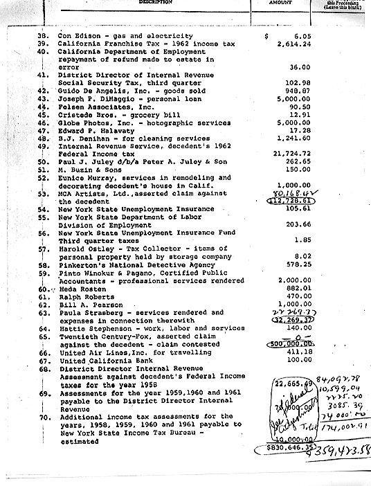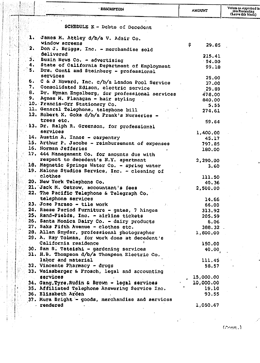 There is nothing to suggest that she ever owned a washer and dryer, especially during her final years. Creditors and receipts suggest she always sent her clothes out. The following is a list of creditors who made claims against her estate.