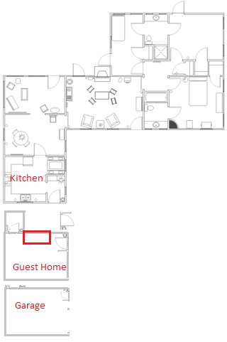 He then that he never went through the garage or the guest house and that the washer and dryer were off the kitchen. See the below images for the layout of Marilyn’s home: